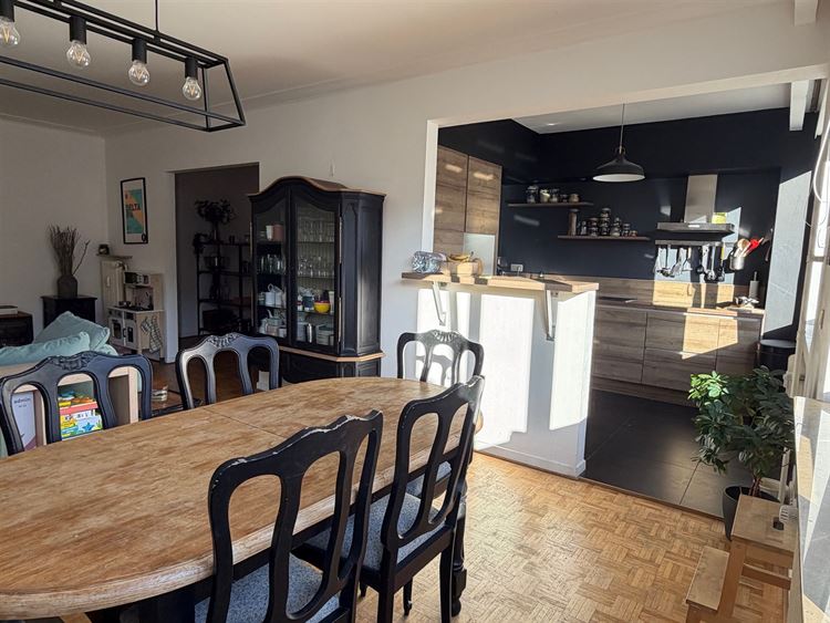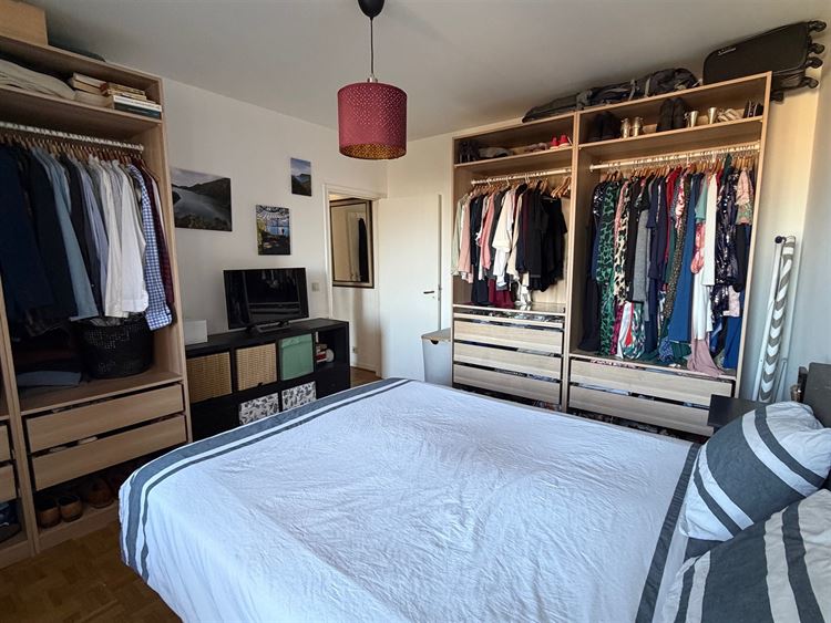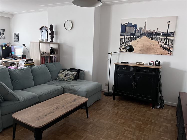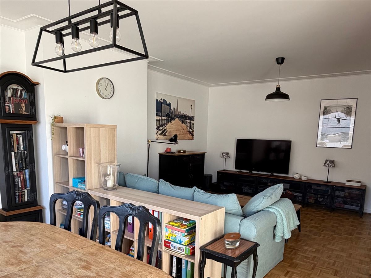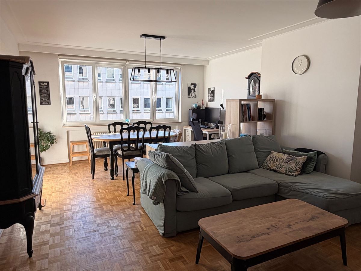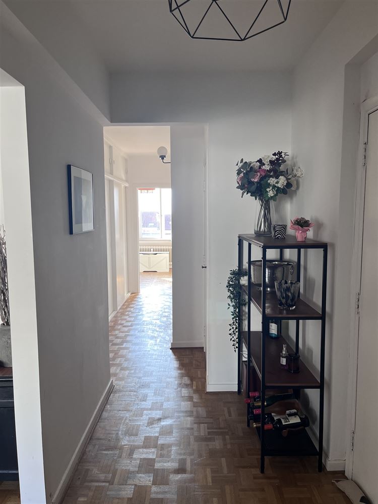 Infos & visites : 0475.78.77.99. MEISER / PLASKY / JAMBLINNE DE MEUX - Idéalement situé dans une rue calme à sens unique , à proximité immédiate des transports en commun (tram, bus, pré-métro), des commerces, restaurants et de toutes les commodités, ce sympathique appartement entièrement rénové en 2017 d’environ 95 m² (selon PEB) occupe le 5eme étage /6 d’un immeuble construit en 1970. Il offre un agréable espace de vie de ± 32 m²,baigné de lumière avec une cuisine américaine entièrement équipée (réfrigérateur - freezer, four, lave-vaisselle, taques électriques, hotte.). À l’arrière, deux belles chambres de ± 14,5 m² et ± 11 m² dont l'une avec terrasse (+/-3m²). Le bien dispose également d’une salle de douche avec espace buanderie, ainsi que d’un WC séparé. Divers: chaudière commune au gaz Wiessman (2012), châssis en PVC à double vitrage ( 2017), parquet dans les pièces, installation électrique conforme, cave privative en sous-sol, garage box fermé en sous-sol en supplément ( +35.000 euros ) PEB : D .Provision de charges pour les communs et pour le chauffage + eau chaude + eau froide privatifs : +/- 340 euros /mois - fond de réserve +-34 euros / mois. Libre d’occupation le 1er juin 2026 - Excellente localisation et TB investissement. A visiter sans tarder sur RDV- 0475.78.77.99.